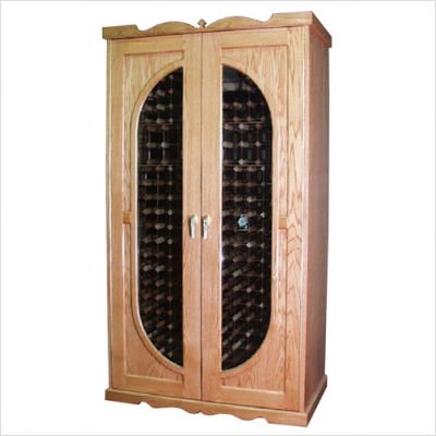 Vinotemp 440 Monaco Features: -Approx. bottle capacity: 280 -Two glass doors with a half oval shape and wood carvings -Carved cornice and base -Furniture trim doors -High quality White Oak exterior -3 coats of finishing in your choice of color -3 coats of semi-gloss treatment -Redwood / aluminum wine racking system -Universal 3 3/4" racking to fit most bottle sizes -State of the art Wine Mate cooling system (1500 BTU) -Digital temperature control -Dimensions: 86" H x 46" W x 29" D This beautiful oak wine cabinet, with it's two glass doors with a half oval shape and wood carvings, is not only storage and protection for up to 280 bottles of wine, it's a piece of furniture that will last through the years. An unfinished interior protects your wine collection from tainting that can be caused by the chemicals in stains and varnishes and is kept at a constant temperature of 55 degrees with 50-70% humidity by the WineMate 1500 BTU self contained cooling systems. Includes brass hardware and your choice of 16 different exterior wood finishes. PLEASE NOTE: Unit requires a minimum of 4-6 inches on back, 12 inches on sides, and 6-12 inches above for proper ventilation.